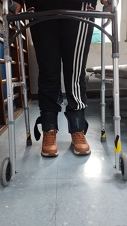 En la literatura se ha descrito beneficio del uso de pesas en extremidades para la dismetría de pacientes con ataxia cerebelosa; sin embargo, no se ha estudiado su uso en pacientes con ataxia sensitiva(8). No obstante, durante el período de rehabilitación la paciente refirió un mejor desempeño con el uso de las prendas compresivas y las pesas en sus extremidades (Figuras 2 y 3). Para el caso de las prendas compresivas, su uso se tradujo en mejorías funcionales en la realización de actividades, como la alimentación y aseo personal, expresadas en el índice de Barthel, como se detallará a continuación.